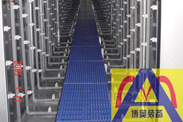 槽體----槽體的作用是儲存槽液,保證槽液正常的工作循環,設置有溢流槽、擋渣網、放水管及水泵吸口。槽體采用雙面焊接,保證下漏液,每只槽體均由主、副槽組成。