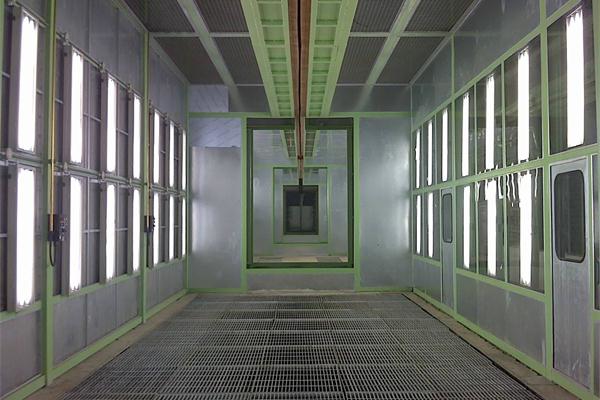 水旋式噴漆室由室體、送風裝置、漆霧過濾裝置和抽風裝置四大部分組成。室體為型鋼框架復合彩板結構,具有足夠的強度和剛度,美觀大方。噴漆室內水旋器霧化效果的調整,主要分為水量的調整和風量的調整,使二者達到匹配狀態。