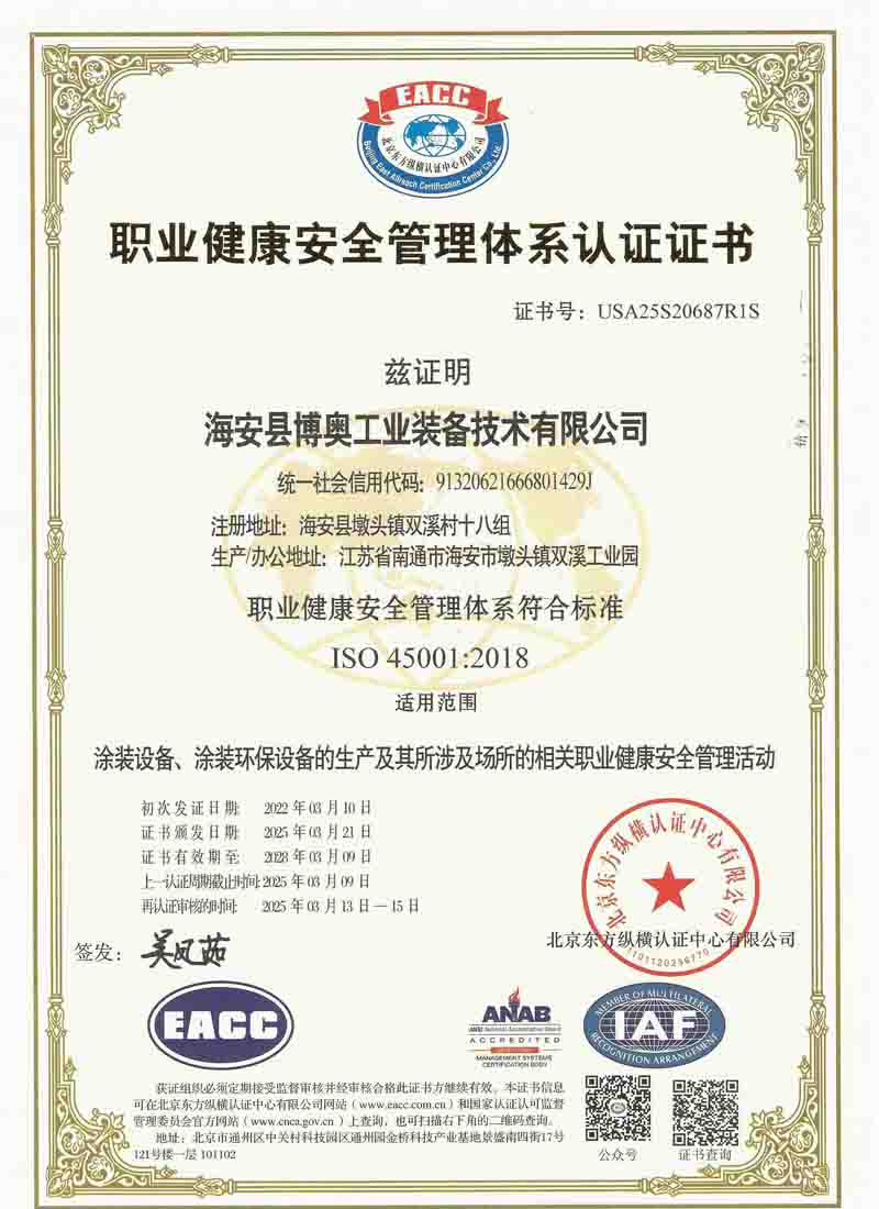 職業健康安全管理體系認證證書